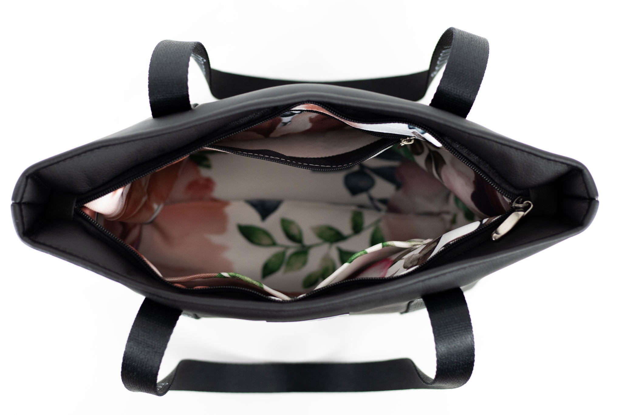 - Wnętrze: wytrzymała podszewka w kwiaty